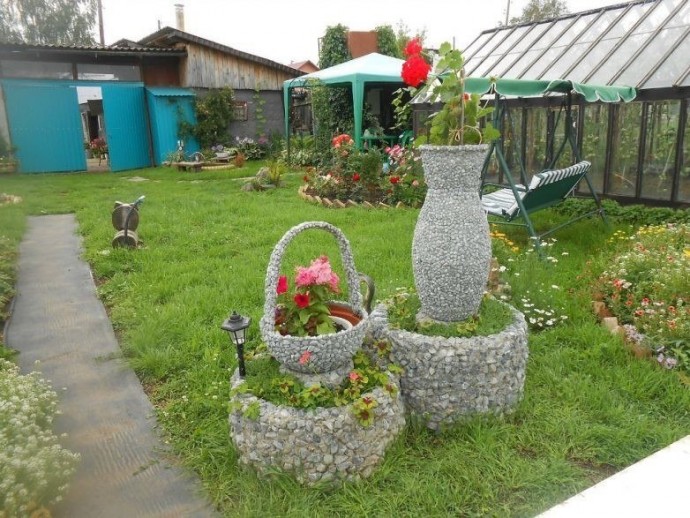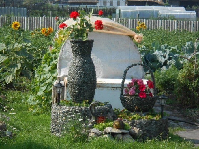 Кашпо для сада из щебёнки можно не спеша сделать в холода, пока работы в саду особо нет.