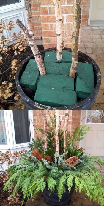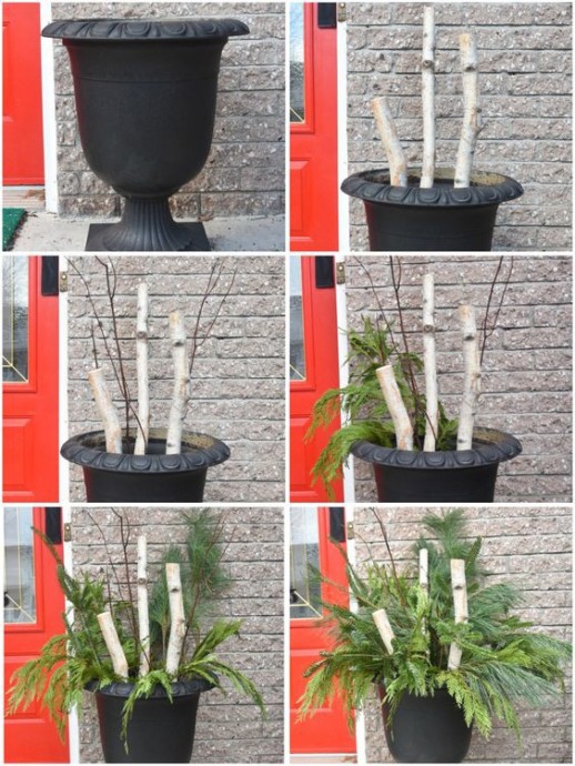 Как правильно составить праздничные композиции с бревнами - показано в мастер-классе ниже.