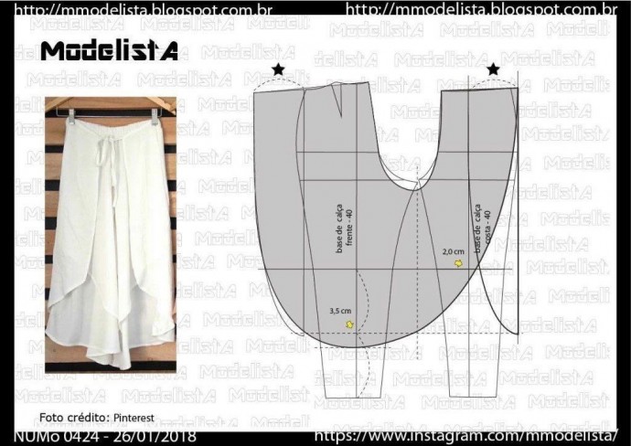 Моделирование юбки-брюк с запахом вы можете сделать на основе проверенной выкройки любимых брюк.