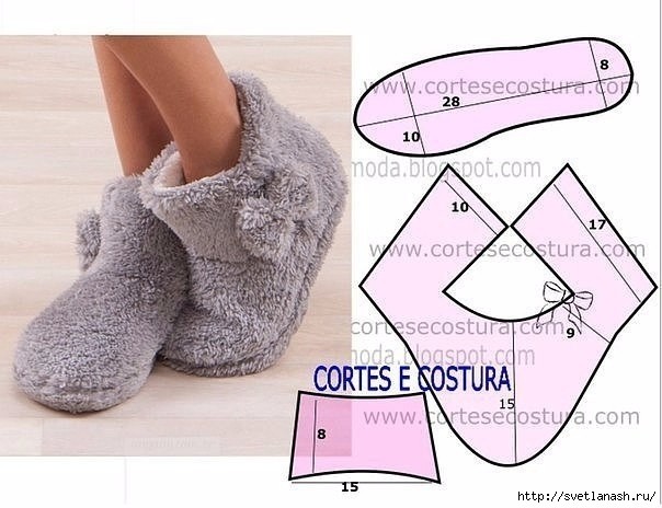 Множество уютных теплых тапочек может быть сшито благодаря образцам моделирования, приведенным ниже.