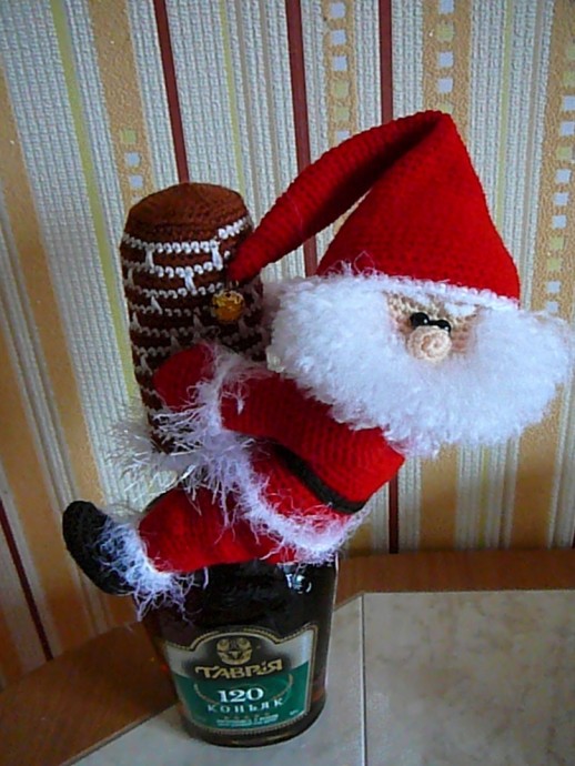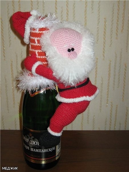 Фартук на бутылку шампанскогоТакая бутылка может стать новогодним подарком.