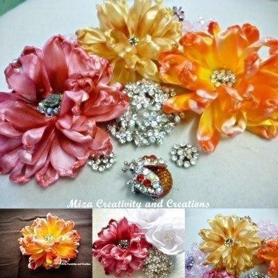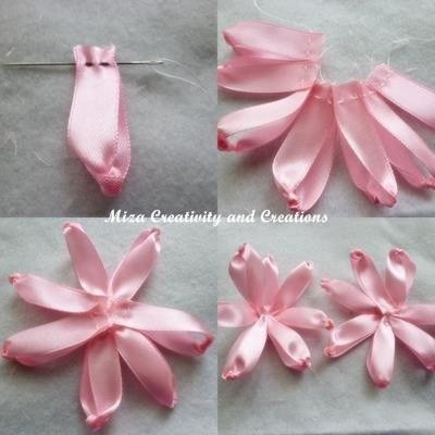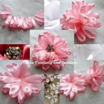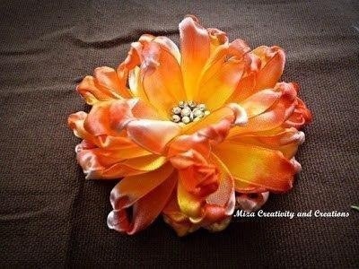 Красивый цветок из лент оригинален наличием узелков, которые его очень украшают.