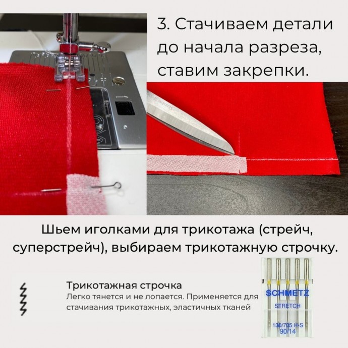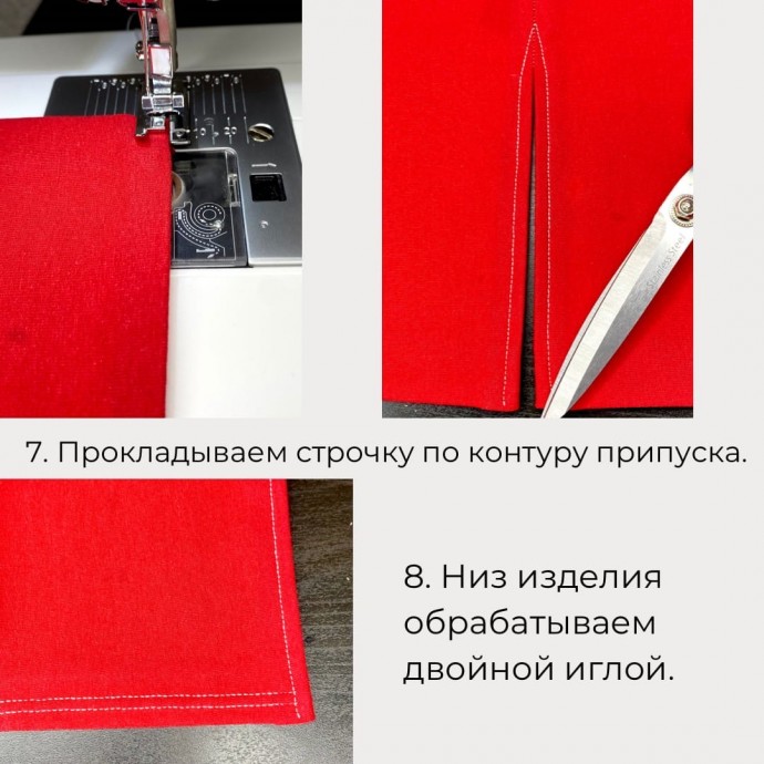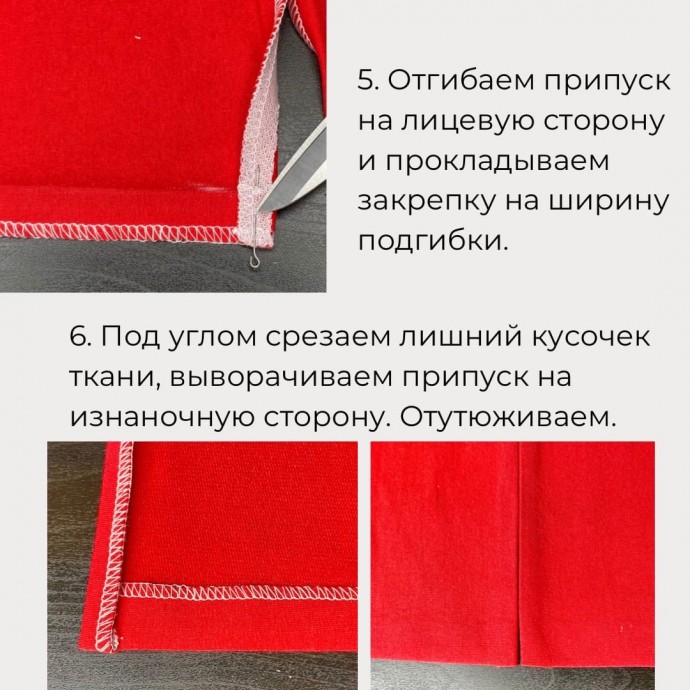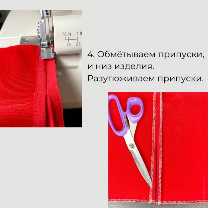 Его используют при обработке разреза в худи, платьях, футболках и в брюках.