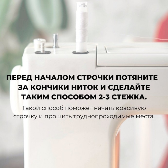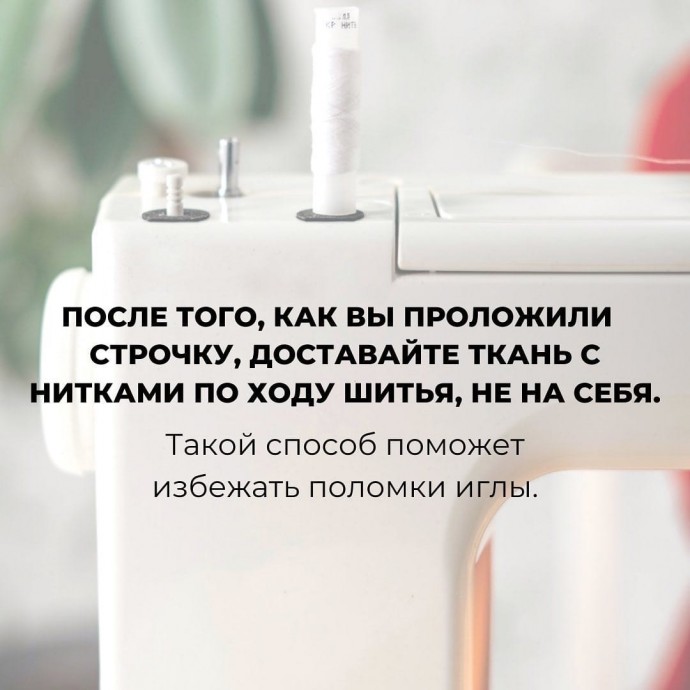 1. При пошиве не тяните ткань на себя или вперёд, старайтесь двигать ткань мягко, помогая машинке. Благодаря этому вы избежите дефектов строчки и не растяните ткань.