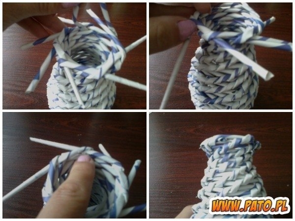 Плетем вазочку из газетных трубочек. Мастер-класс.