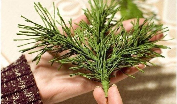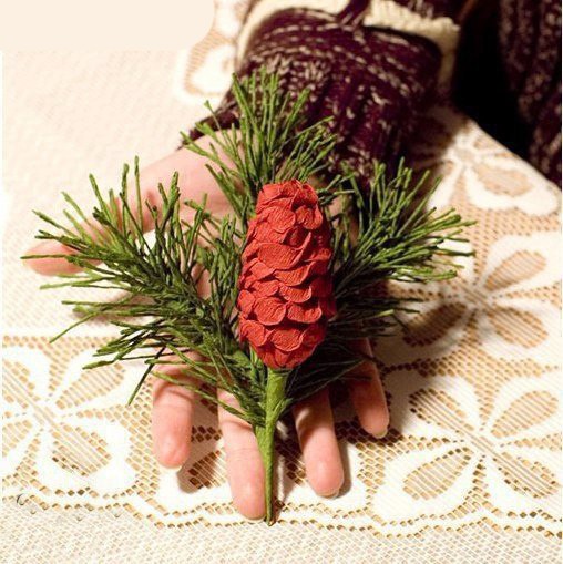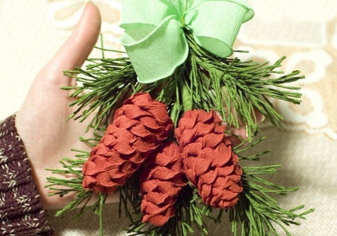 Еловая веточка с шишками из гофрированной бумаги выглядит просто шикарно.