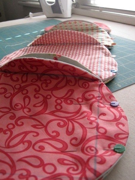 Я предполагаю, что прорези надо делать с лицевой стороны там, где будет покрываться отворотом. Я такой техники пошива квилтов ещё не встречала. Прикольно :).