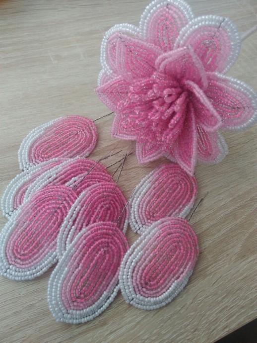 Розовый цветок из бисера это нежность, готовая постоянно цвести на вашем окне.