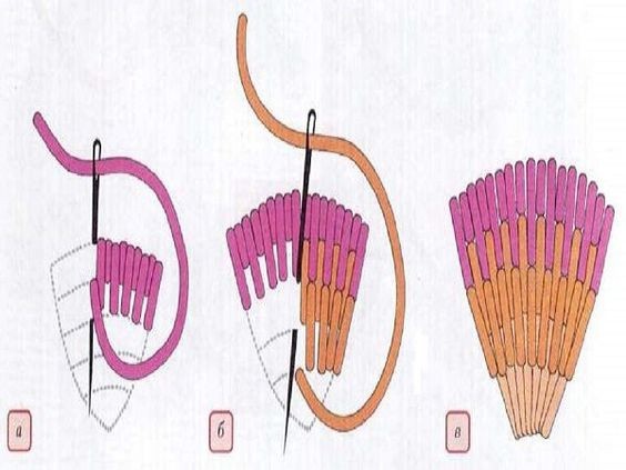 Вышивка разных элементов гладью это основа любых больших картин.