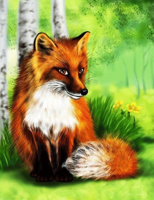 Вышиваем рыжую лисичку и радуемся, что мы не живем в деревне, и лиса не может таскать у нас кур.
