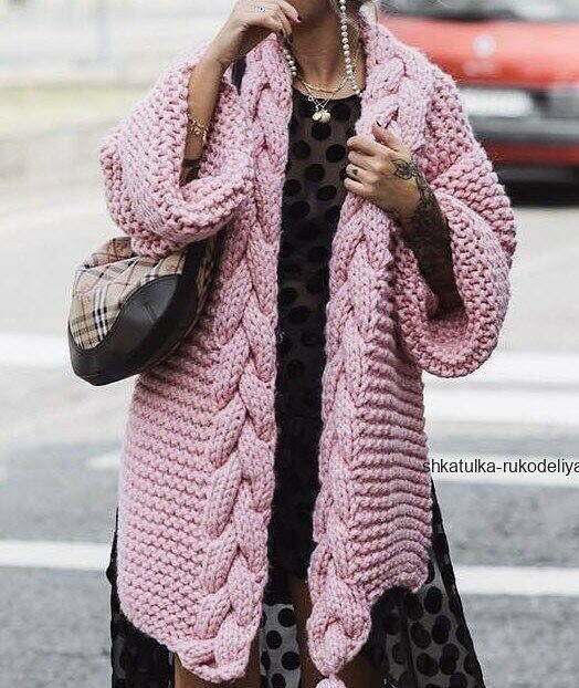Этот красивый кардиган я когда-то увидела в интернете и с тех пор не могла успокоиться – искала описание. И вот наконец-то мои поиски увенчались успехом. В данном описании длина изделия по спинке в самом большом размере 74 см. Но если вы захотите связать более длинный кардиган, то можете просто удлинить изделие в процессе вязки.