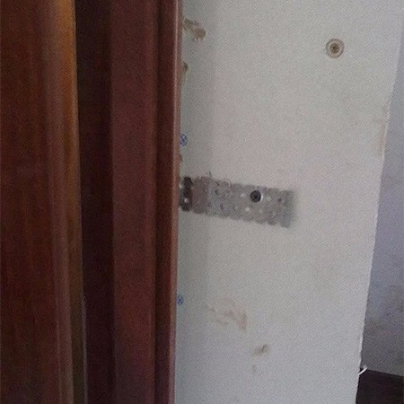 Иногда случается, что размеры проёма гораздо больше размеров двери и, соответственно, коробки. Если разница относительно невелика, то по всей ширине проёма можно будет набить брусок соответствующей толщины. Если же несоответствие размеров существенное, то проём закладывается кирпичами, либо часть стены обшивается гипсокартоном. Но в любом случае, чтобы избежать лишних трат и усилий, заранее демонтируйте старую дверь, измерьте размеры проёма, и в соответствие с ними уже покупайте новую дверь.