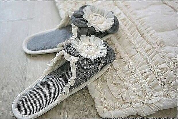 Тапочки можно украсить цветами и бисером, кружевами и стразами.