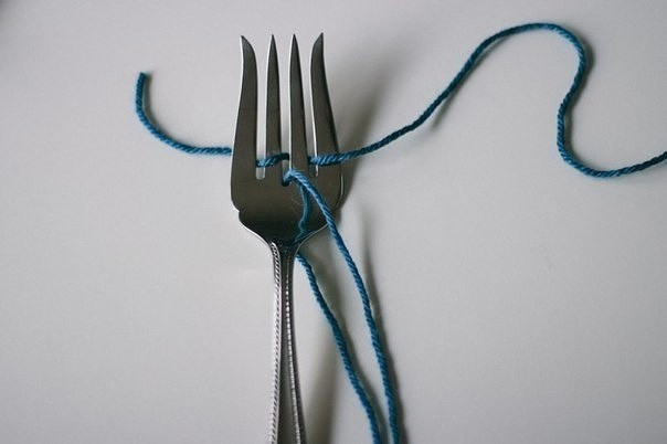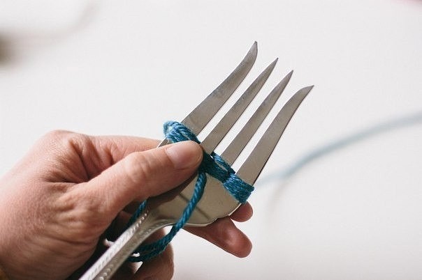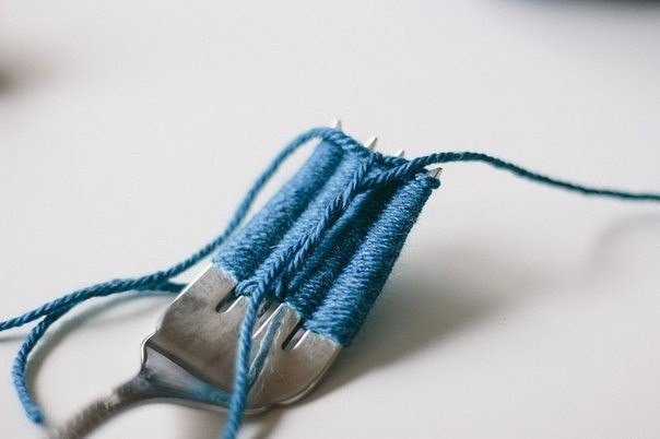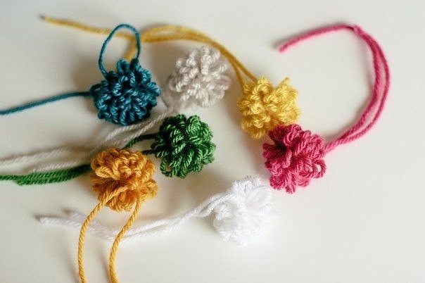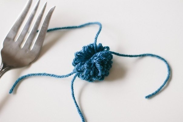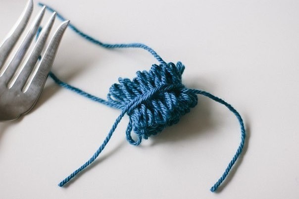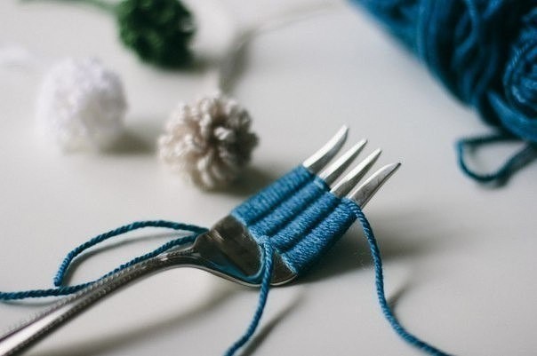 Для создания таких чудесных помпонов достаточно вилки и пряжи.