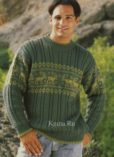 Мужской пуловер с оленями