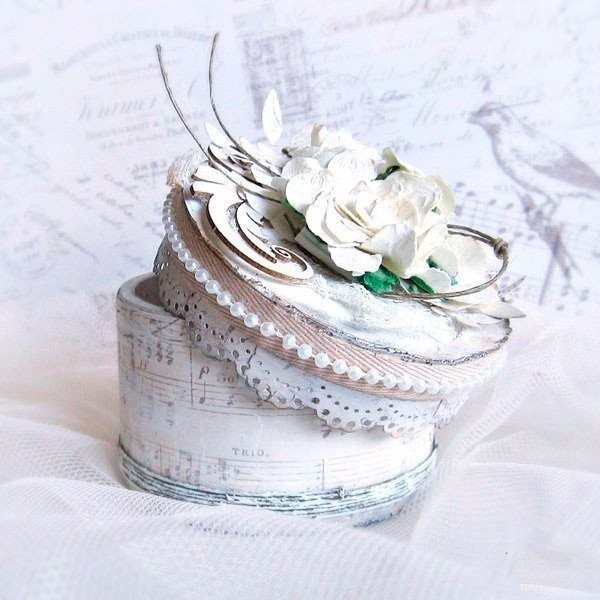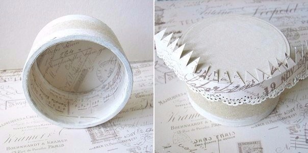 Винтажная шкатулочка может быть сделан из совершенно бросового материала: из втулки от скотча, например.