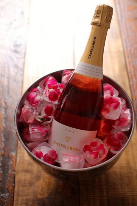 Охладите шипучий напиток не просто во льду, а в замороженном море роз.
