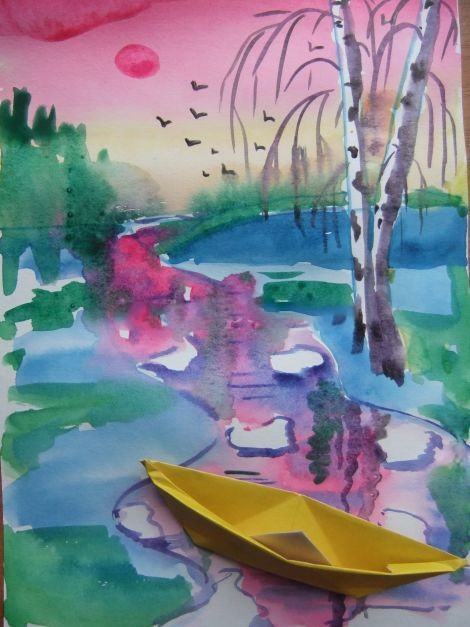Лодку можно как нарисовать, так и выполнить в технике оригами.