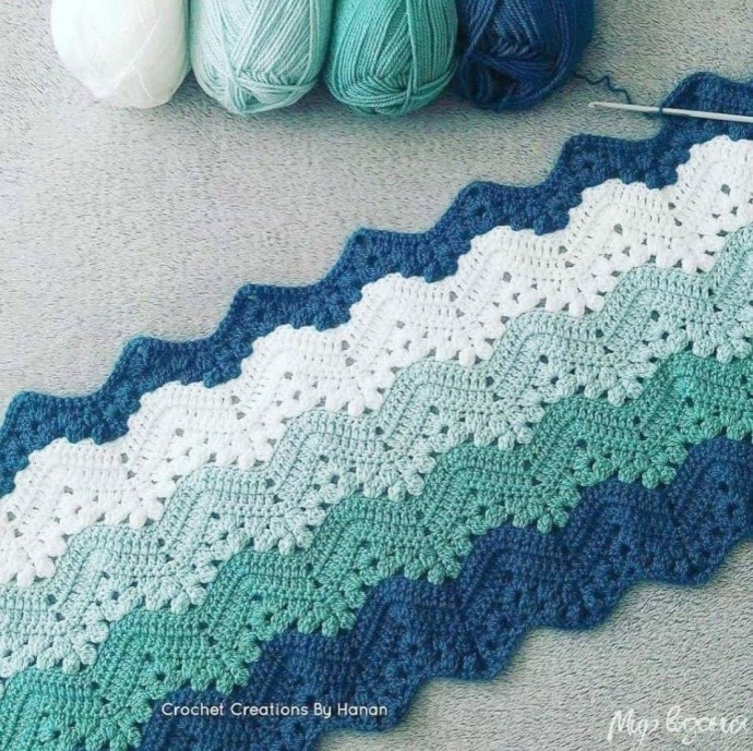 Зигзагообразный узор крючком будет одинаково хорошо смотреться как разноцветный, так и в одном цвете.
