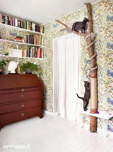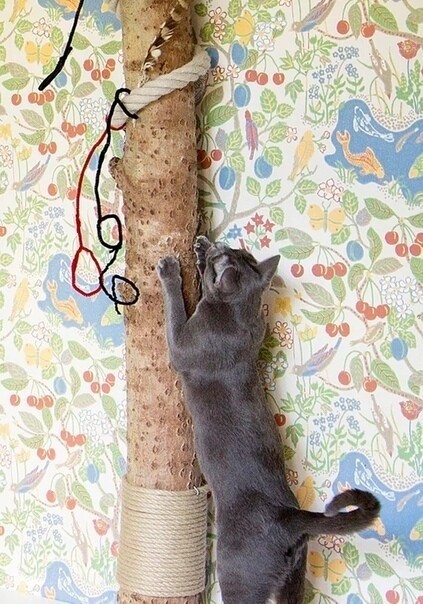 Вот ни за что так не делайте, иначе все обои вдоль шпагат будут оборваны. Кошки не разделяют пространство и в процессе когтедрания обязательно заденут обои, я это все прошла!