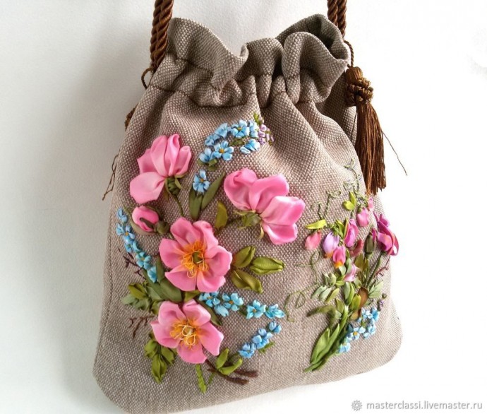 Идеи украшения сумок вышивкой из лент