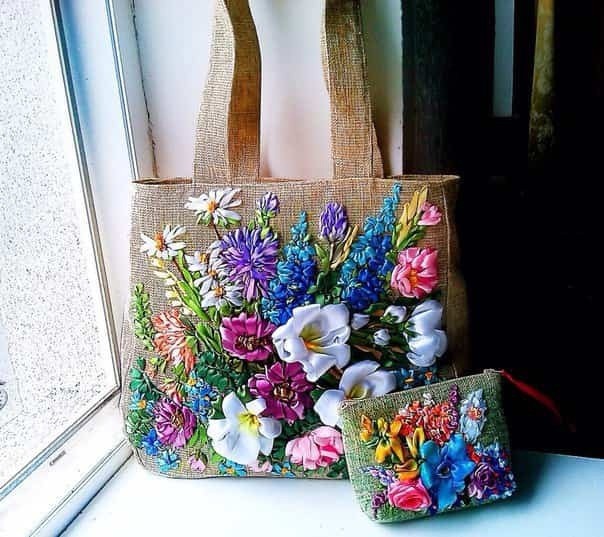 Идеи украшения сумок вышивкой из лент хороши тем, что так можно преобразить и готовую сумку, и сшитую своими руками.