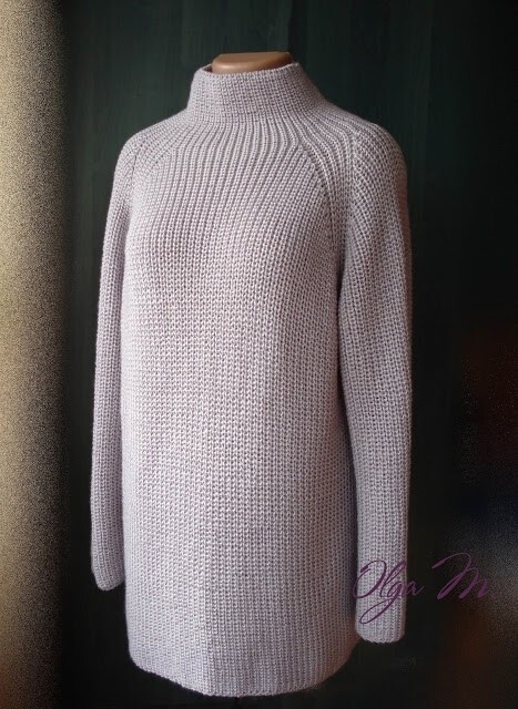 На размер 52 расход пряжи - 650 г.Модель оверсайз, реглан, воротник - широкая стойка, свитер связан вкруговую снизу вверх.
