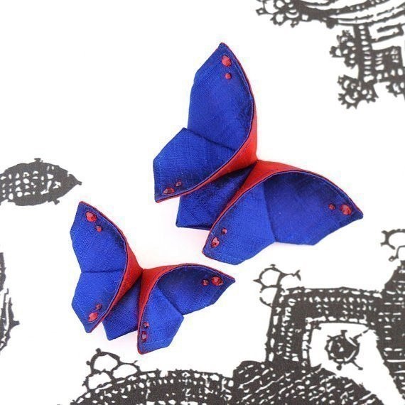 Бабочки оригами из ткани могут быть с сеткой - и тогда подойдут для шляпки, например.