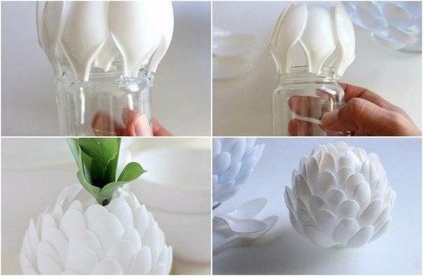 Интересные поделки из пластиковых ложек к тому же могут выполнять какие-либо функции.