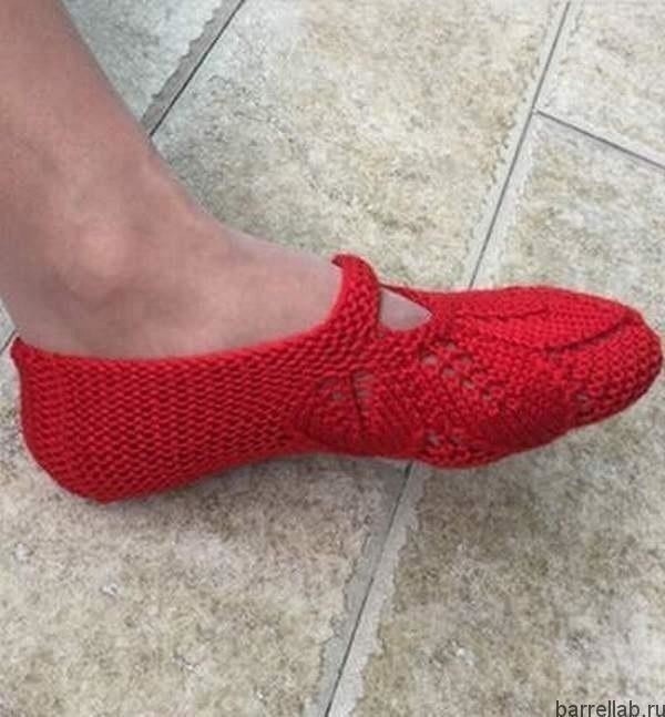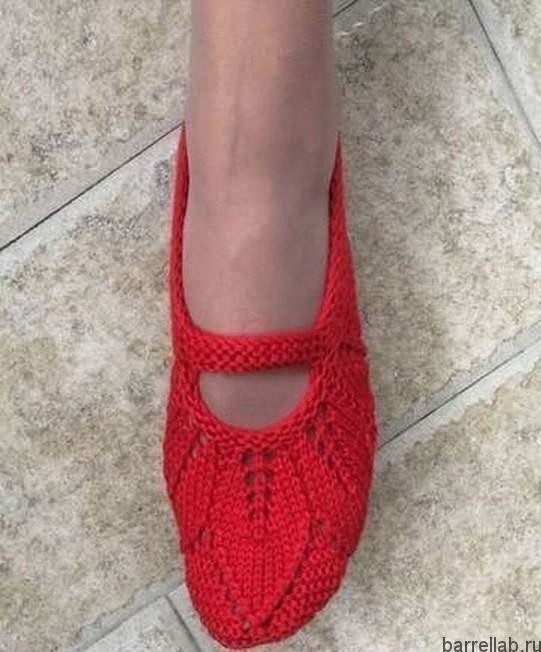 Следочки с узopом в виде листьев станут тапочками, если пришить подошву из экокожи или фетра.