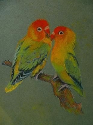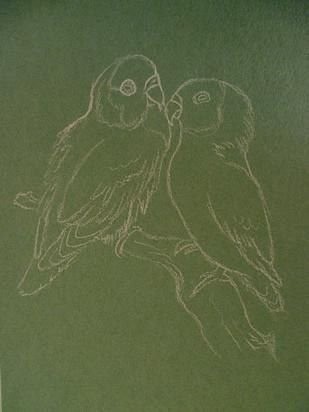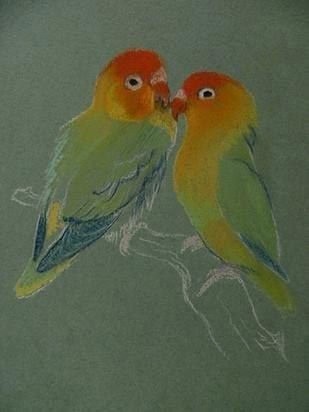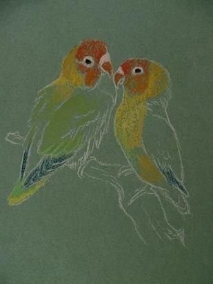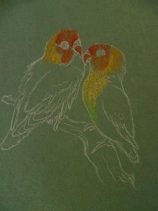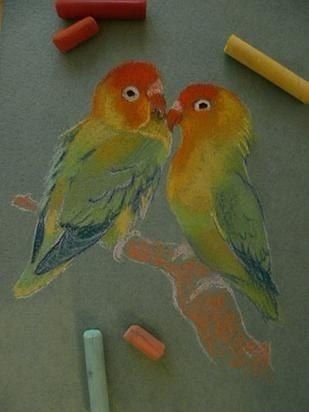 Рисуем попугаев-неразлучников как символ верности в любви и вешаем в рамочке на стену.