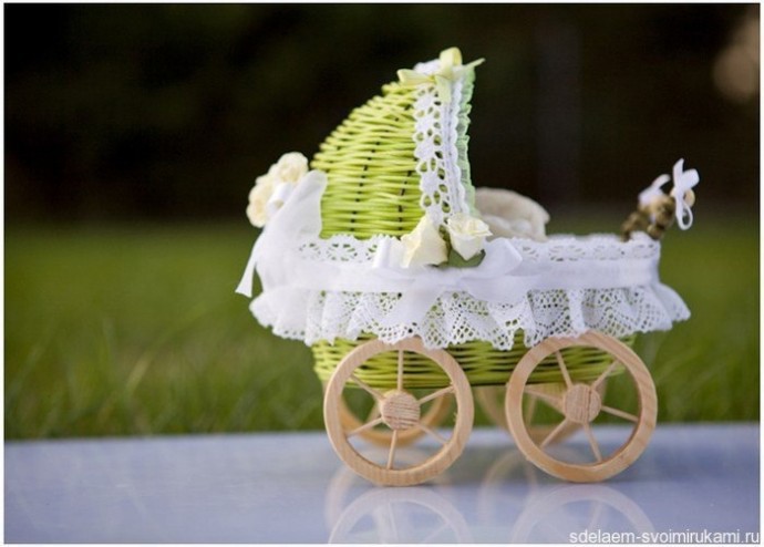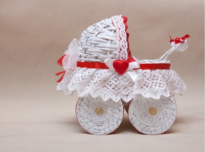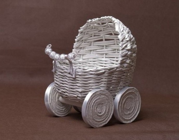 Сувенирная коляска из газетных трубочек: мастер-класс