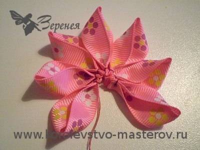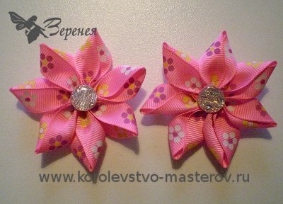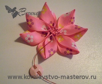 Цветок из ленты своими рукамиТакие цветы больше подходят для детей или для украшения подхватов штор.