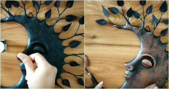 Панно в виде полумесяца с листиками это оригинальность и красота в одном флаконе.