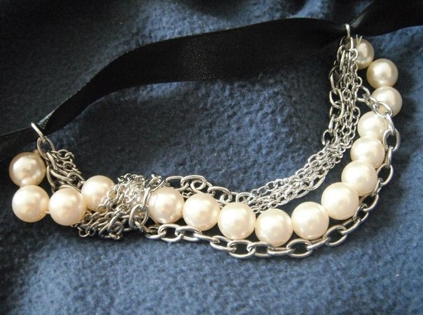 Красивый браслетПо этой же схеме можно сплести и колье в комплект к браслету.