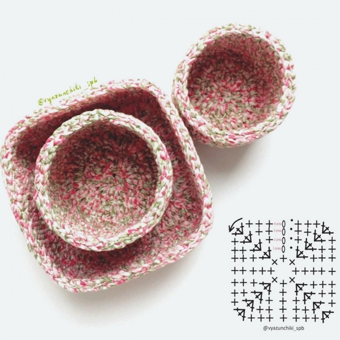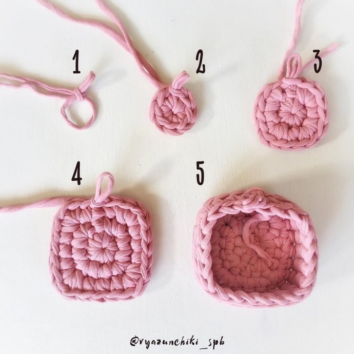 Отпарьте дно утюгом с паром через х/б ткань (не на саму поверхность изделия). Затем дайте испариться лишней влаге из изделия и переходите к вязанию стенок корзинки.