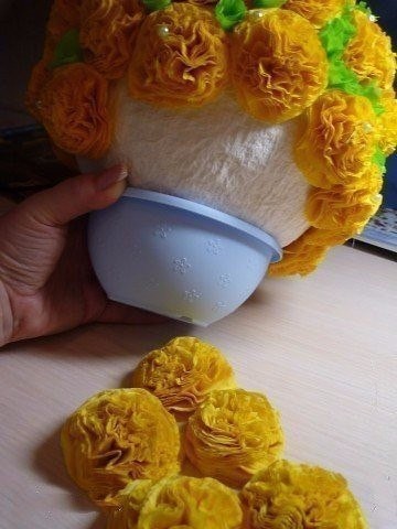 Желтые цветы из салфеток