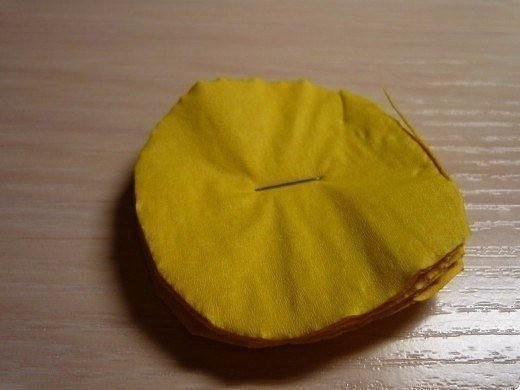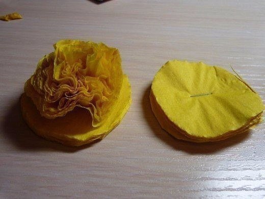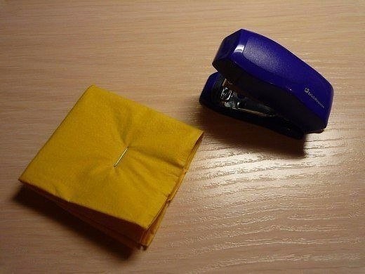 Желтые цветы из салфеток создаются элементарно при помощи степлера.