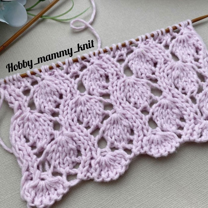 1 ряд — Кромочную снять; 1 изнаночная; 1 лицевая; накид; 5 лицевых; накид; 1 лицевая. Повторять нужное количество рапортов.