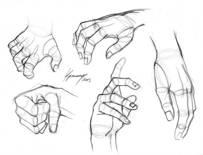 Интересные ракурсы, в которых пальцы находятся в разных положениях изобразить сложнее. Есть несколько способов, которые помогут избегать ошибок.