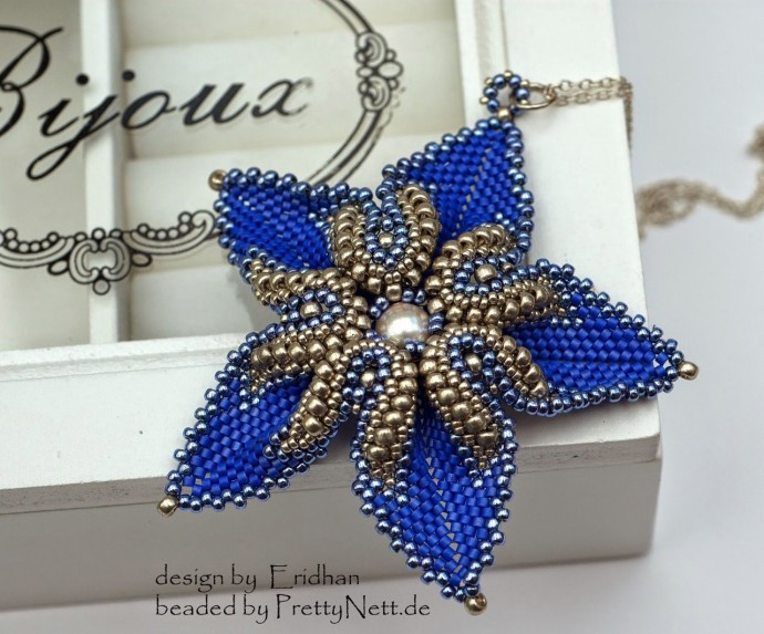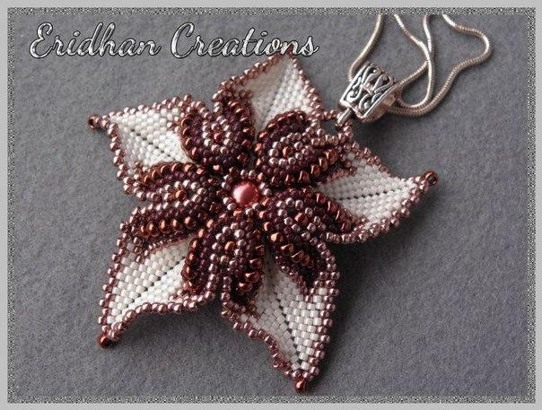 Цветок-звезда из бисера может носиться как кулон даже со строгой белой рубашкой.