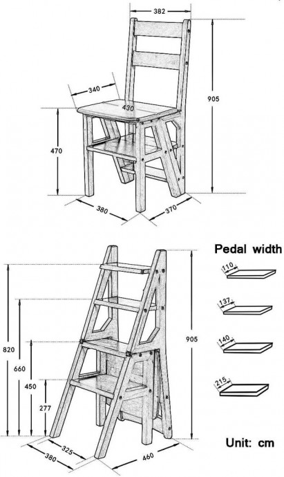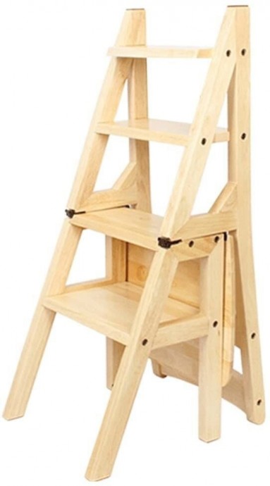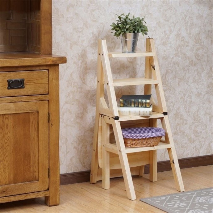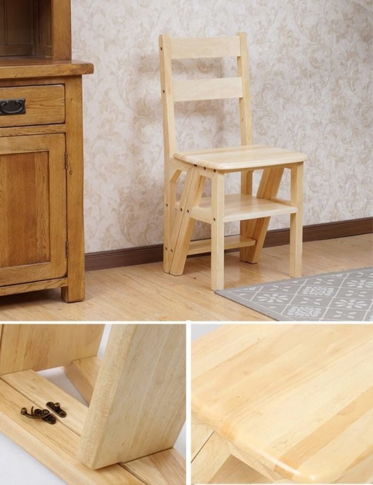 Стул в виде лесенки экономит место и позволяет не только иметь дополнительное сидячее место, но и добираться до трудно доступных мест наверху.