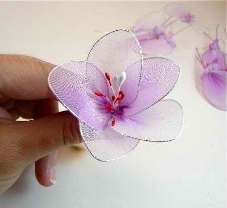 Нежные цветы из капрона можно либо сразу делать из цветных колготок, либо разукрасить после изготовления.