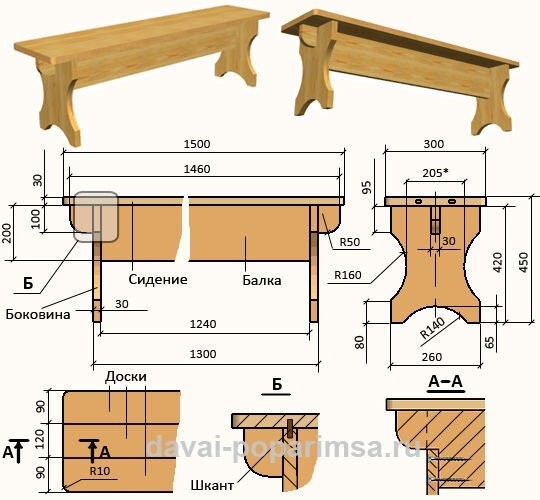 Такую лавку из бани при необходимости можно вынести и к столу под деревом на свежем воздухе.