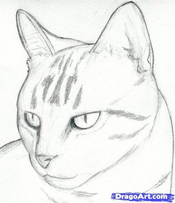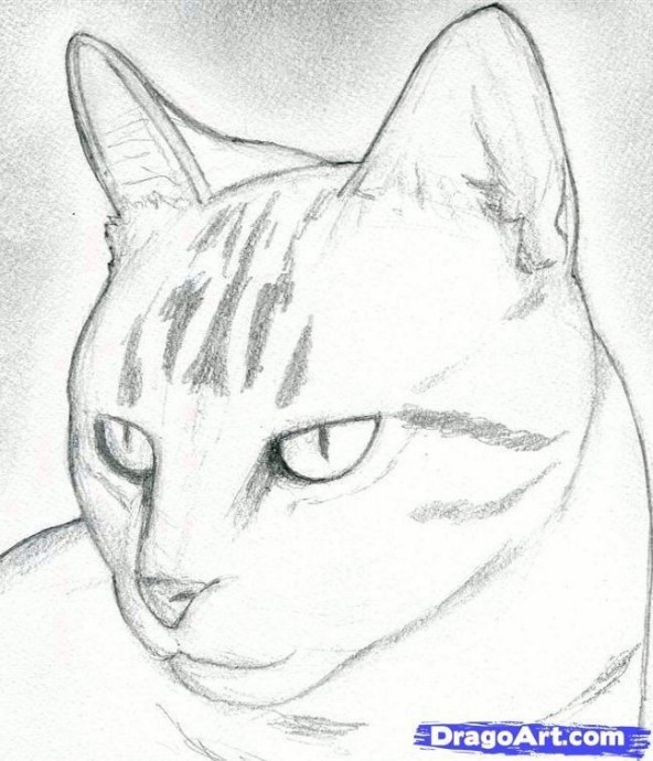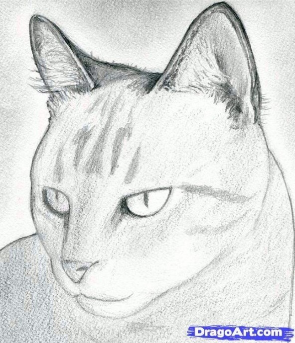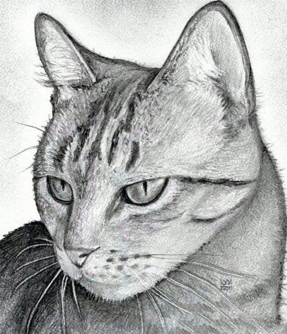 Кот хоть и нарисован простым карандашом, но кажется практически живым.