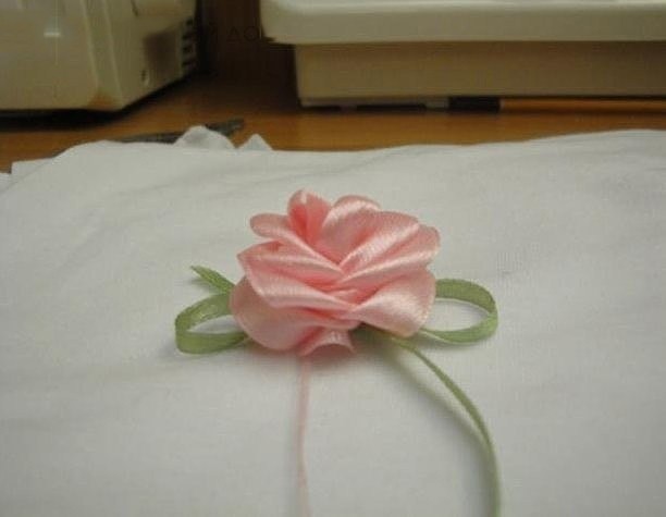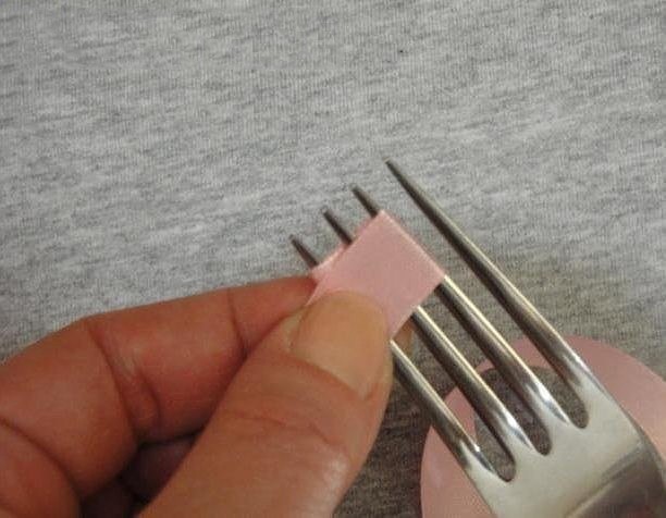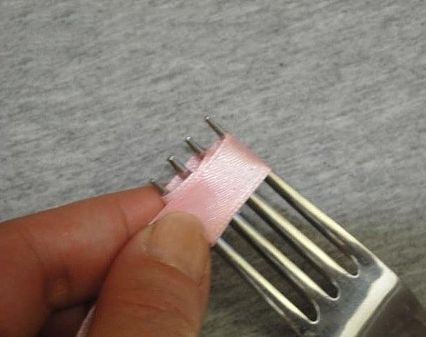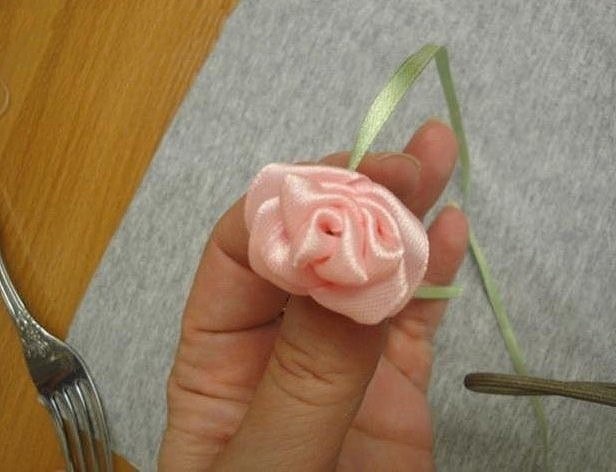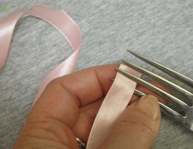 Эта розочка из атласной ленты отличается тем, что ее можно создать при помощи вилки.