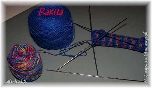 1. Итак нам понадобятся: носочная пряжа, носочные спицы 5 или 4 штуки, ножницы, штопальная игла.