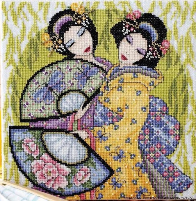 Вышиваем крестиком гейш и получаем удовольствие от обили женской энергии в этом процессе.