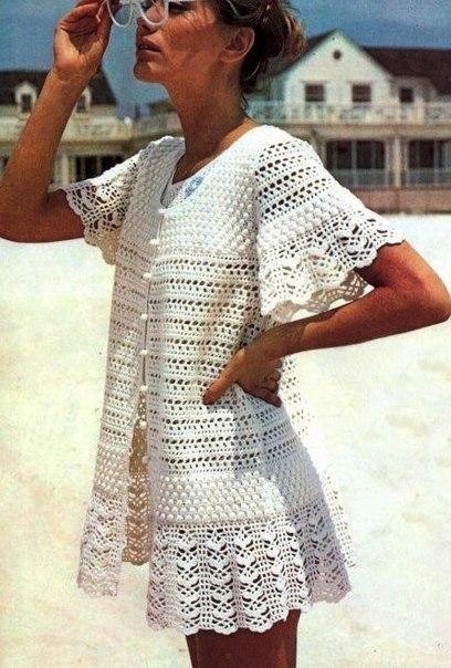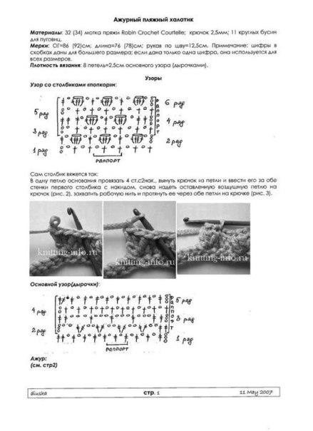 Ажурный пляжный халатик с узором "поп-корн" может использоваться не только на пляже, но и дома в теплое время года.