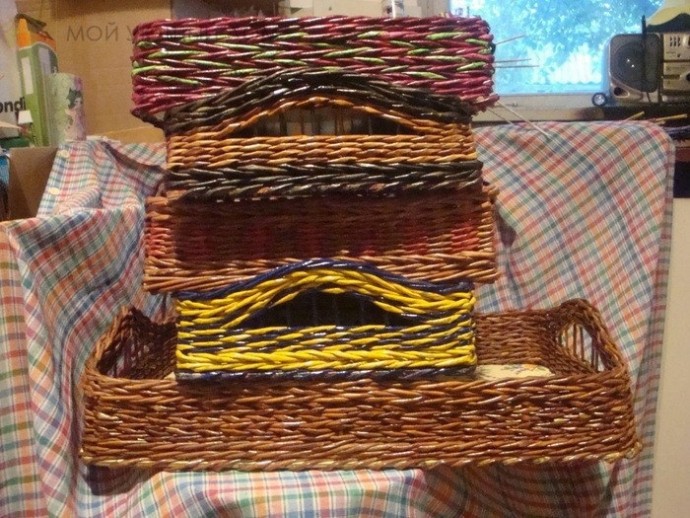 Комбинируя основные способы плетения (веревочку в две трубочки, веревочку в три трубочки) и цвет самих трубочек можно разнообразить вид изделия.
